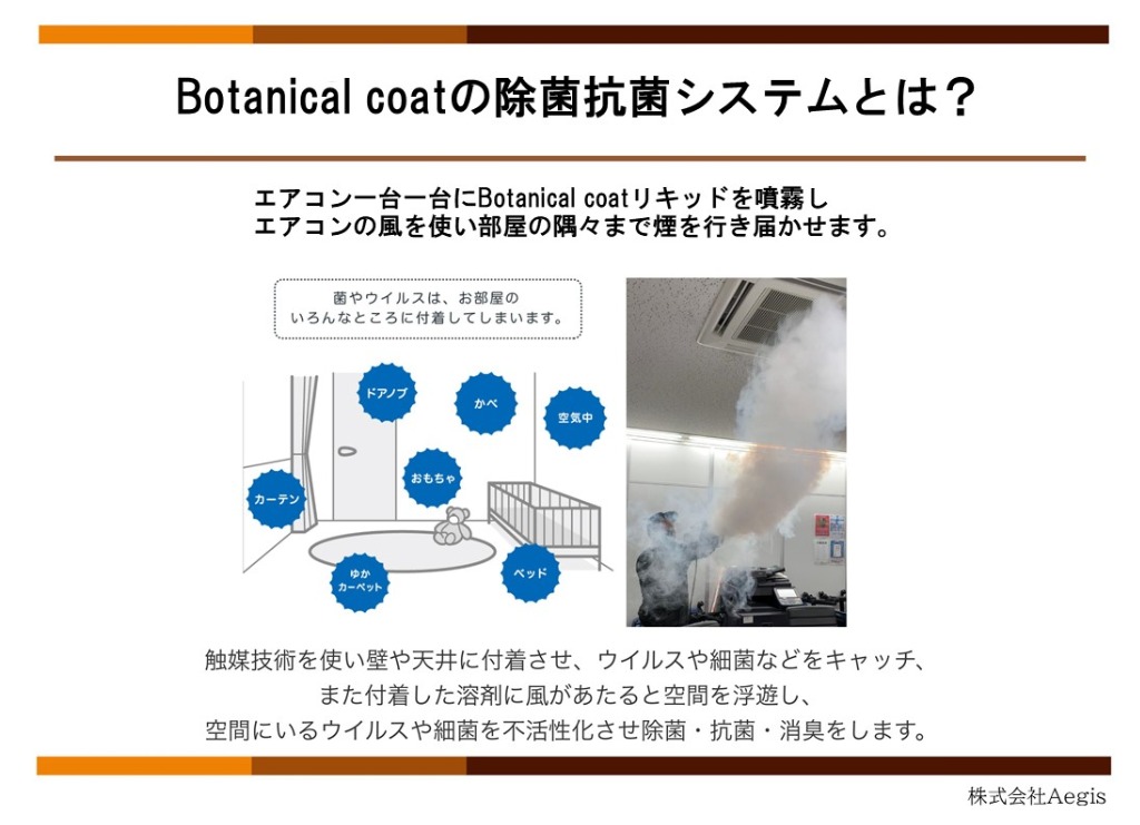 勢いの収まらない新型コロナウイルスは近年施設やテナントでクラスターが多発しております。感染対策に天然成分100%のボタニカルコートでどんな隙間や繊維の奥深くの細菌やカビ、悪臭を除去していきませんか?少しでも気になる事がありましたらお問合せお待ちしております。